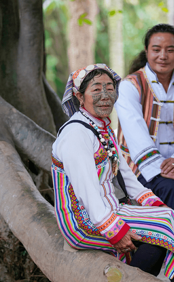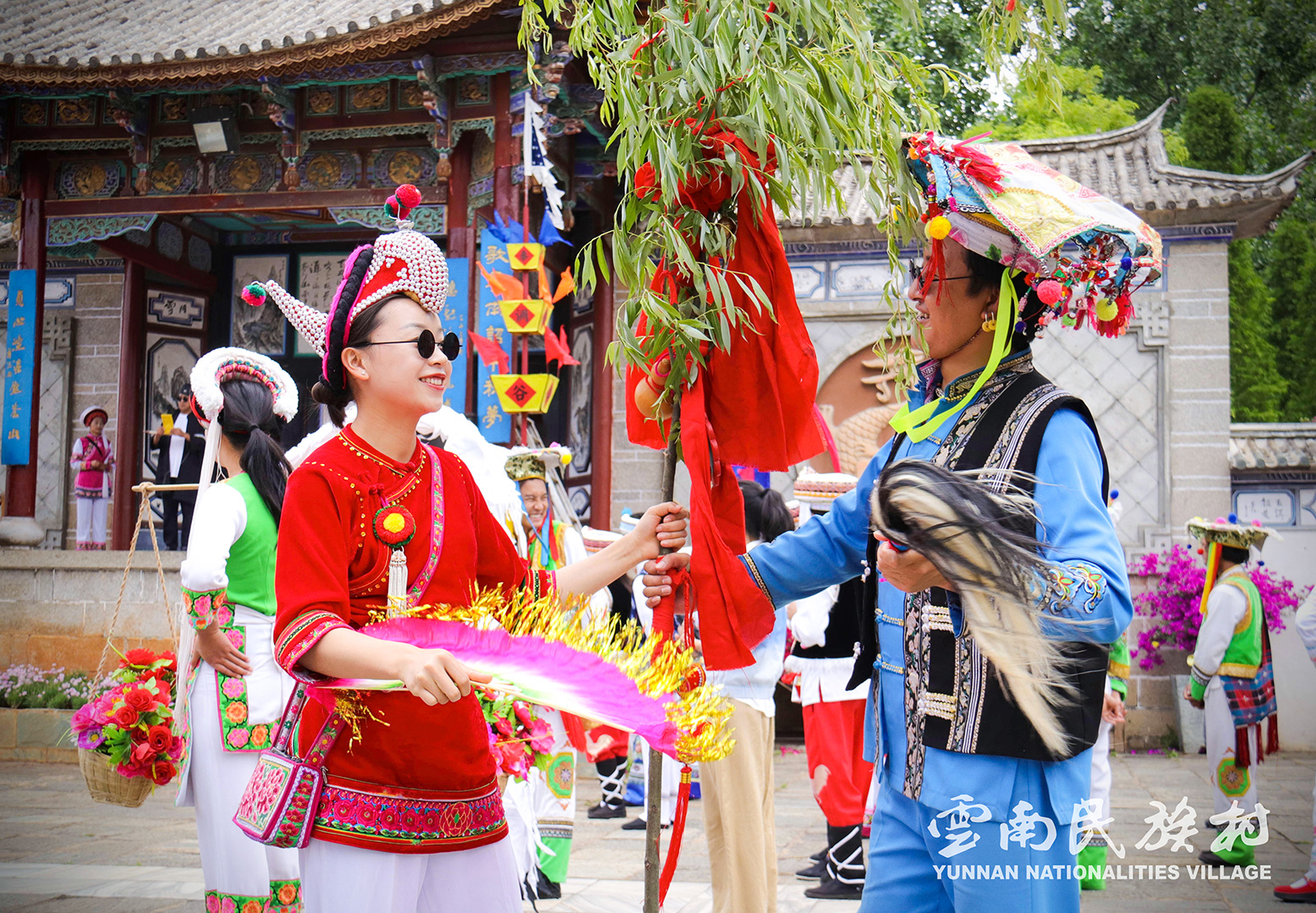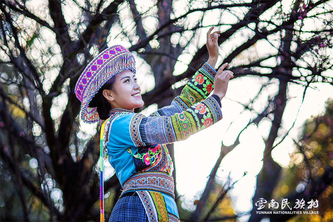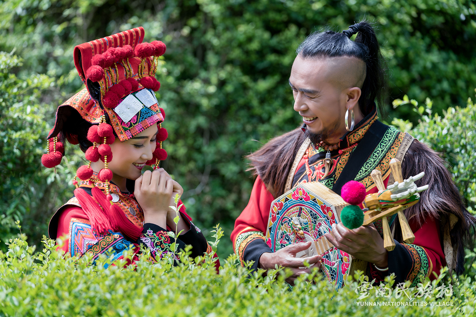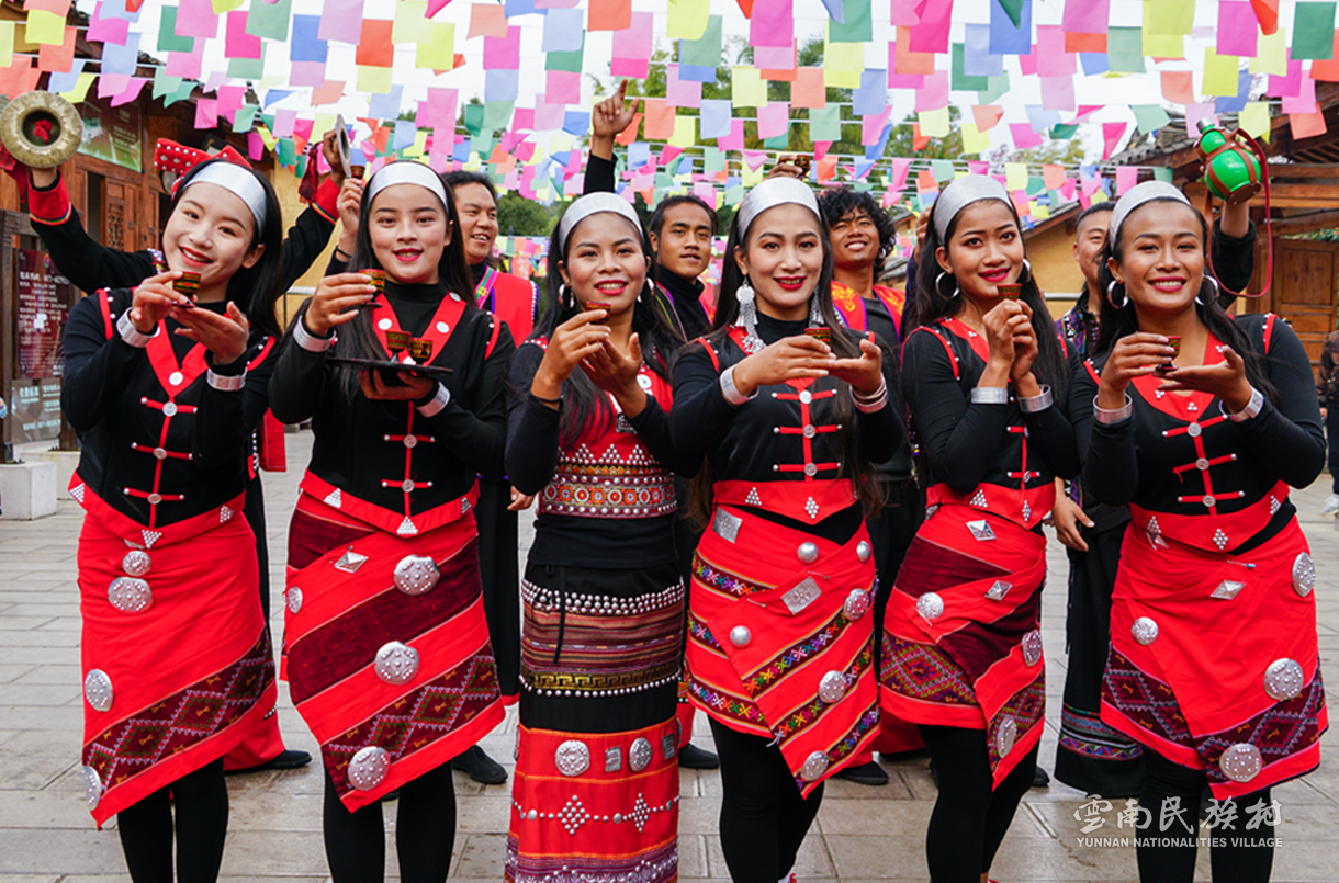 彝族在云南境內(nèi)約471萬(wàn)人,是省內(nèi)人口最多、分布最廣的少數(shù)民族,主要聚居在金沙江、元江流域和哀牢山、無(wú)量山腹地。彝族是一個(gè)能歌善舞的民族,民間打歌、跳樂(lè)之風(fēng)盛行,大三弦、跌腳舞久負(fù)盛名。火把節(jié)是彝族最具特色的民族節(jié)日。彝族村占地50余畝,三虎浮雕墻與虎頭內(nèi)祖師形象表現(xiàn)了彝族虎鷹文化。太陽(yáng)歷廣場(chǎng)圖騰柱上有太陽(yáng)、虎、火和八卦圖形象,周圍環(huán)繞著10個(gè)朝向不同的月球造型,外圓周有12生肖石雕。依山而建的“...
